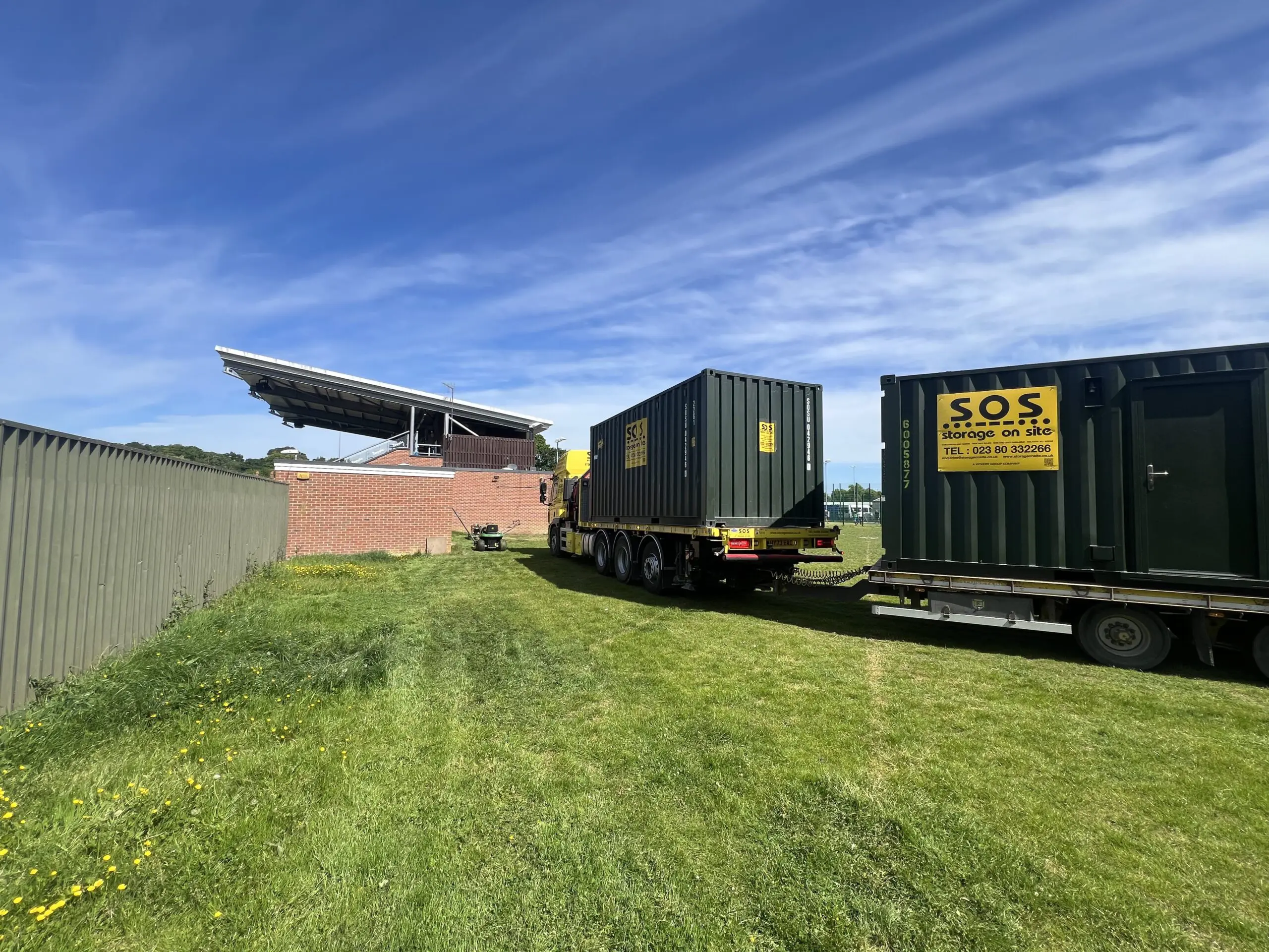 Today, we had the pleasure of delivering two 20ft cabins and one 20ft container to AFC Totton, just in time to support their exciting new chapter following their recent promotion to the National League South.