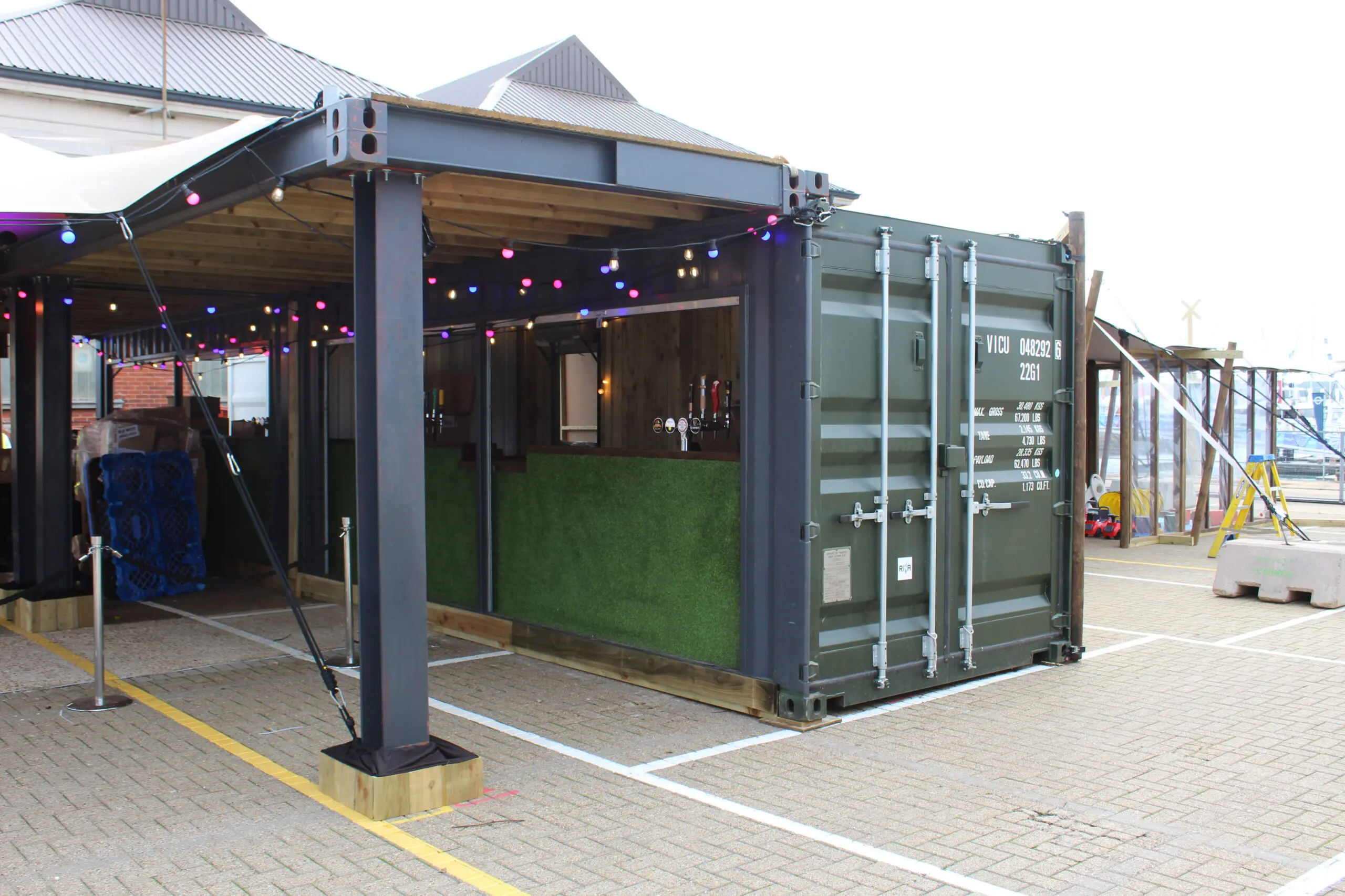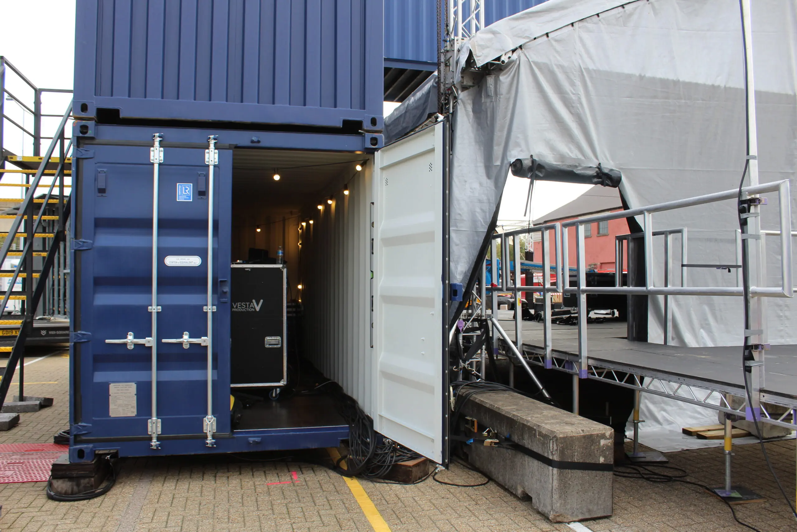 At the heart of the action, the Shipyard stage stands out as one of the most impressive sights. Surrounded by our stacked containers, the landmark creates the authentic feel of a working dockyard. The 40ft container archway provides a dramatic backdrop for live performances from DJ Scott Mills and a crowd-pleasing Queen tribute act, Flash. The towering containers framed the entertainment area perfectly, capturing the maritime spirit while serving as functional offices and stores for the event team.
