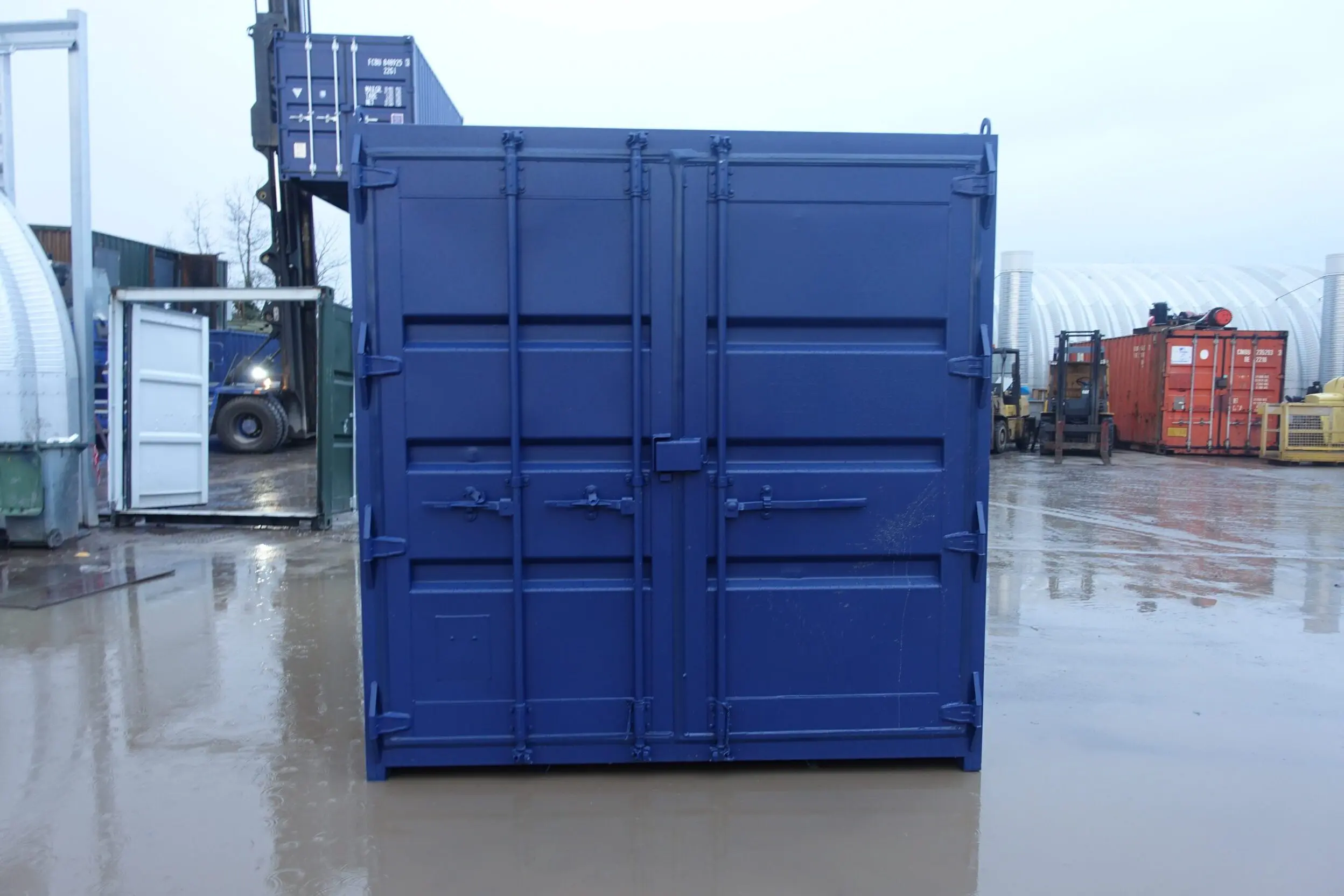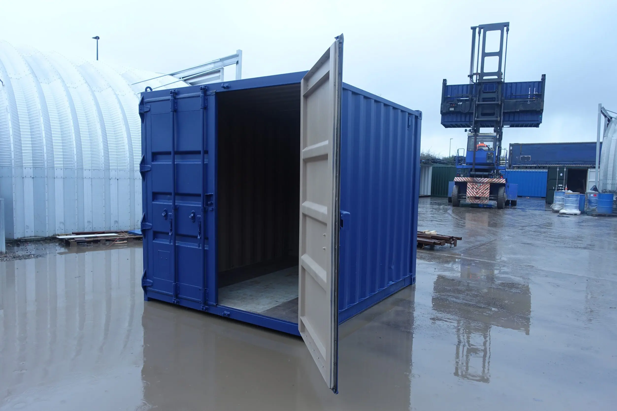 Our 10ft containers typically come in RAL 6007 green or RAL 5013 blue finishes. These colours are smart, discreet, and commonly used across construction and commercial environments. Your container can be repainted in any RAL colour – just mention this to our team when placing your order.