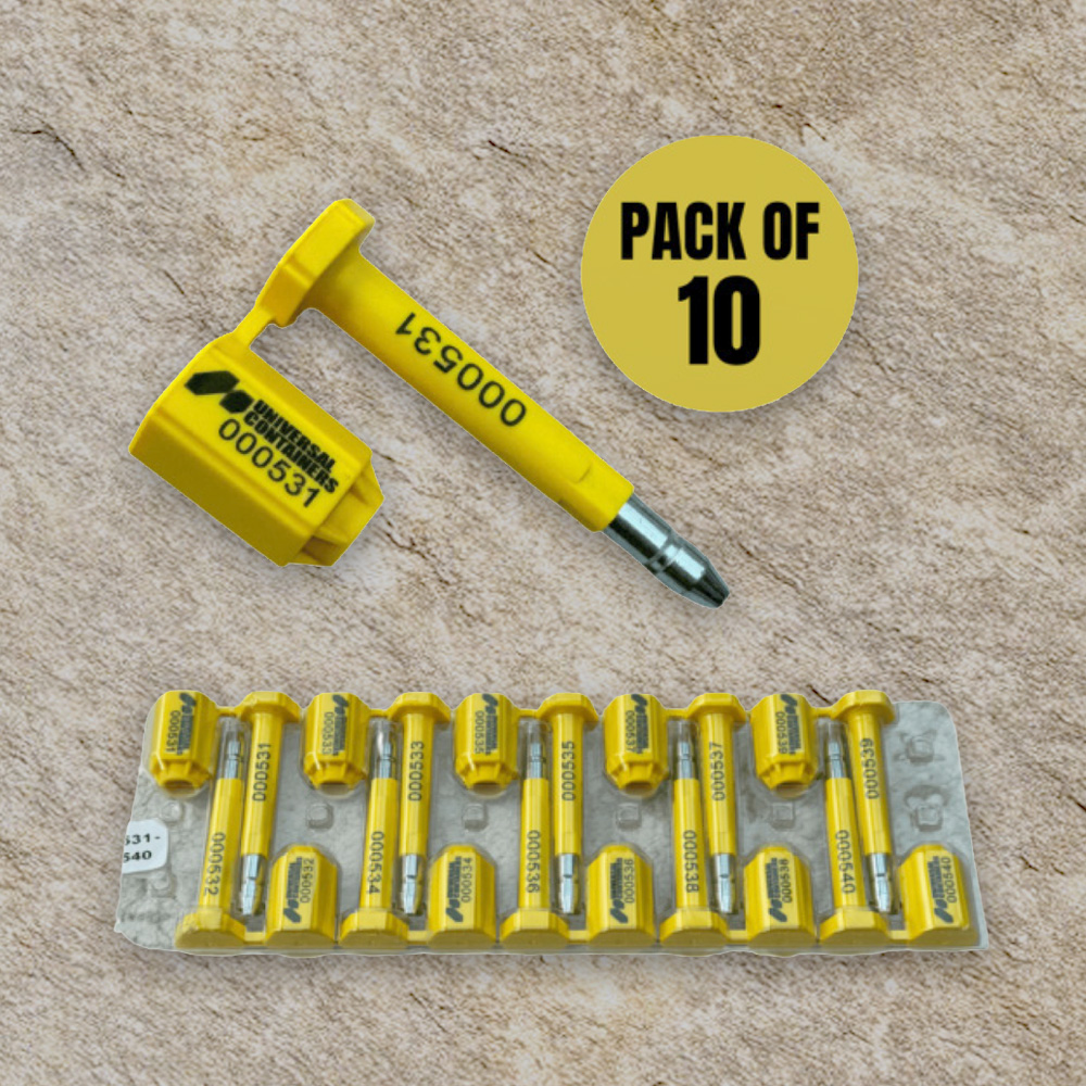 High-security bolt seals designed to secure container doors during transport, compliant with ISO 17712 standards.