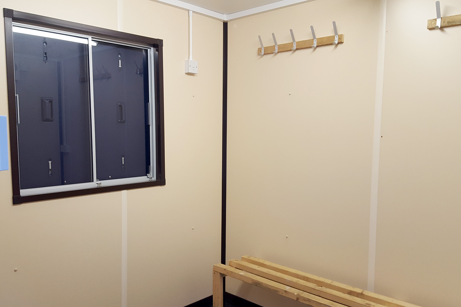 The 10ft drying room cabin is a compact solution for storing and drying wet workwear, ideal for smaller teams or space-restricted sites. Fitted with benches, coat hooks, and heating, it helps keep gear organised and ready for use.