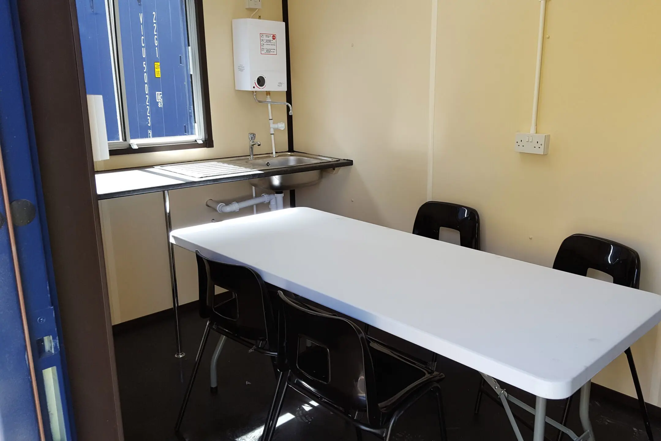 The 20ft kitchen/canteen cabin offers generous space for team breaks, mealtimes, and refreshment prep. Fitted with worktops, sinks, and seating, it’s an inviting, hygienic area that helps boost staff wellbeing and morale.
