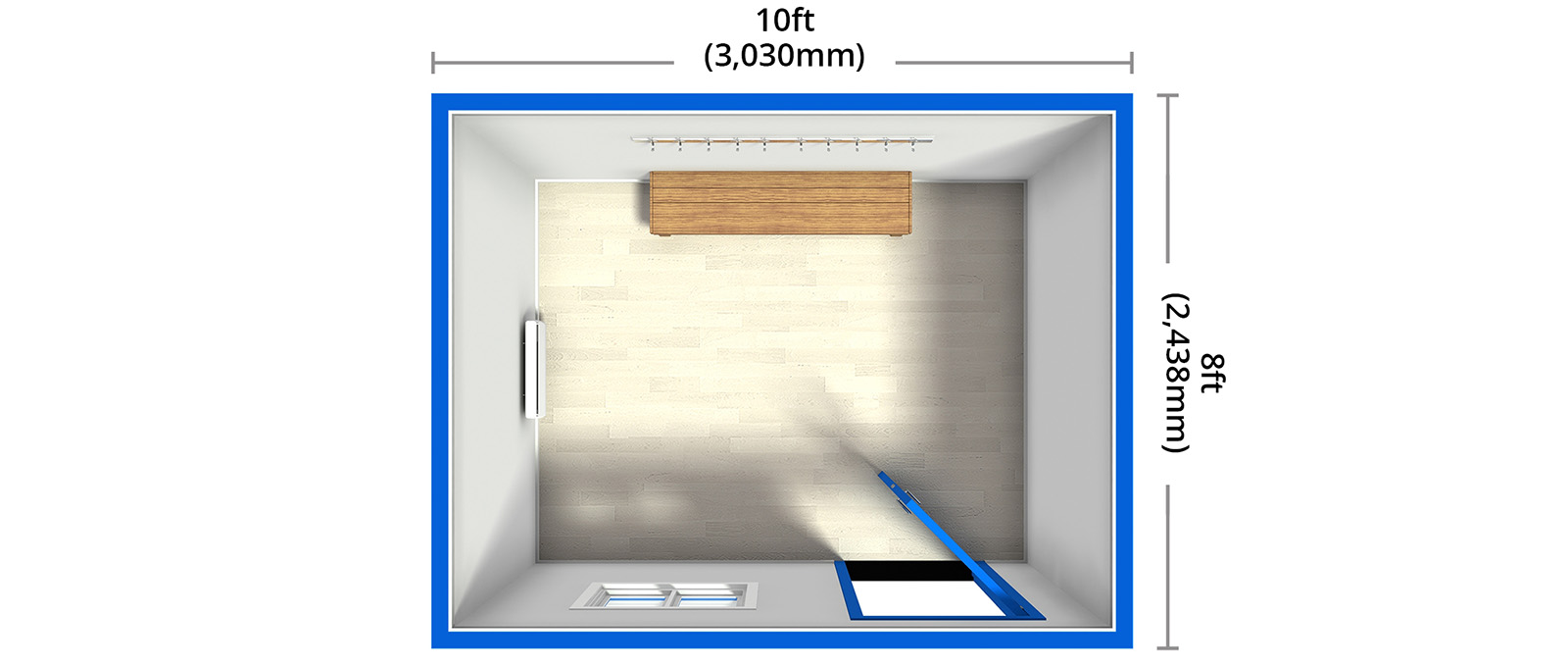 10ft drying rooms are supplied with one sturdy bench for comfortable changing on site.