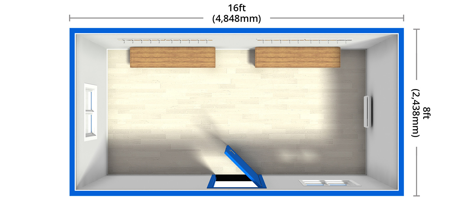 16ft drying rooms are supplied with two sturdy benches for comfortable changing on site.