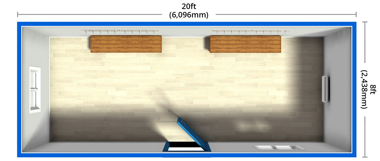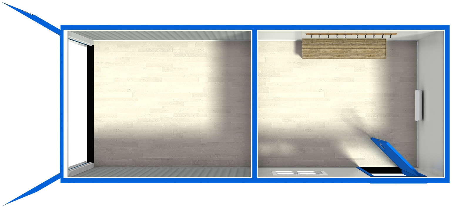 20ft drying rooms are supplied with two sturdy benches for comfortable changing on site.