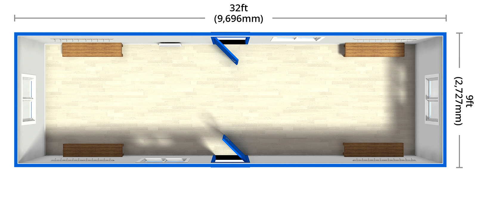 32ft drying rooms are supplied with four sturdy benches for comfortable changing on site.